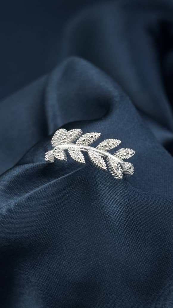 Un estilo natural y elegante que transmite frescura. Este anillo de plata italiana 925 presenta un delicado diseño de hojas entrelazadas con sutiles detalles texturizados que le aportan un encanto único. Una joya versátil que combina con cualquier ocasión.
