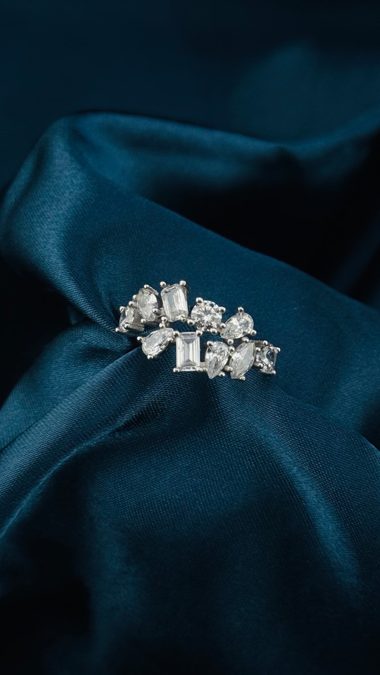 Este anillo de plata italiana 925 combina elegancia y brillo con un diseño de circonias en distintos cortes: redondo, baguette, marquise y pera. Su estilo moderno y sofisticado lo convierte en una pieza ideal para realzar cualquier look con distinción.