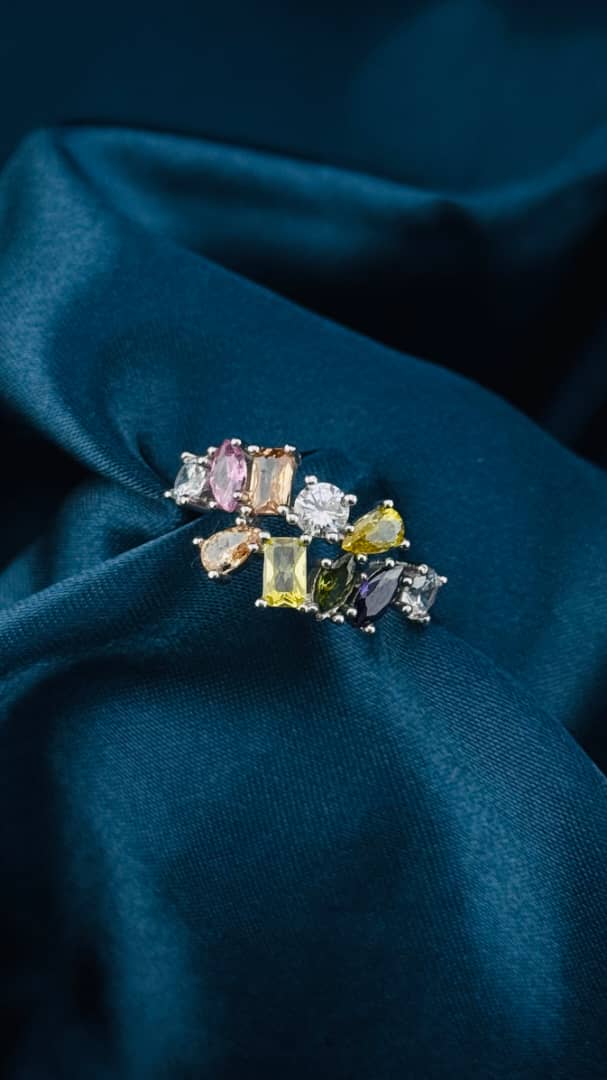 Un diseño vibrante y elegante en plata italiana 925, con circonias de diferentes formas y colores que aportan un estilo sofisticado y moderno. Perfecto para quienes buscan una pieza única que combine brillo, color y distinción en cualquier ocasión.