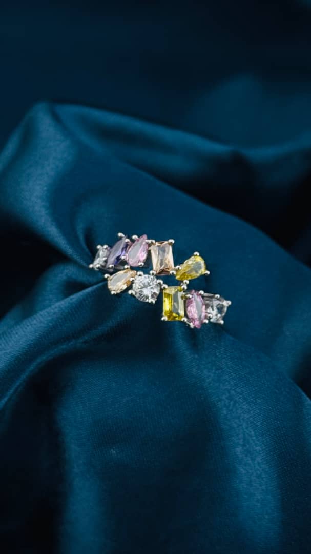 Un diseño alegre y sofisticado en plata italiana 925, adornado con circonias de varios colores y cortes únicos que aportan brillo y frescura. Ideal para complementar cualquier look con un toque moderno y lleno de vida.