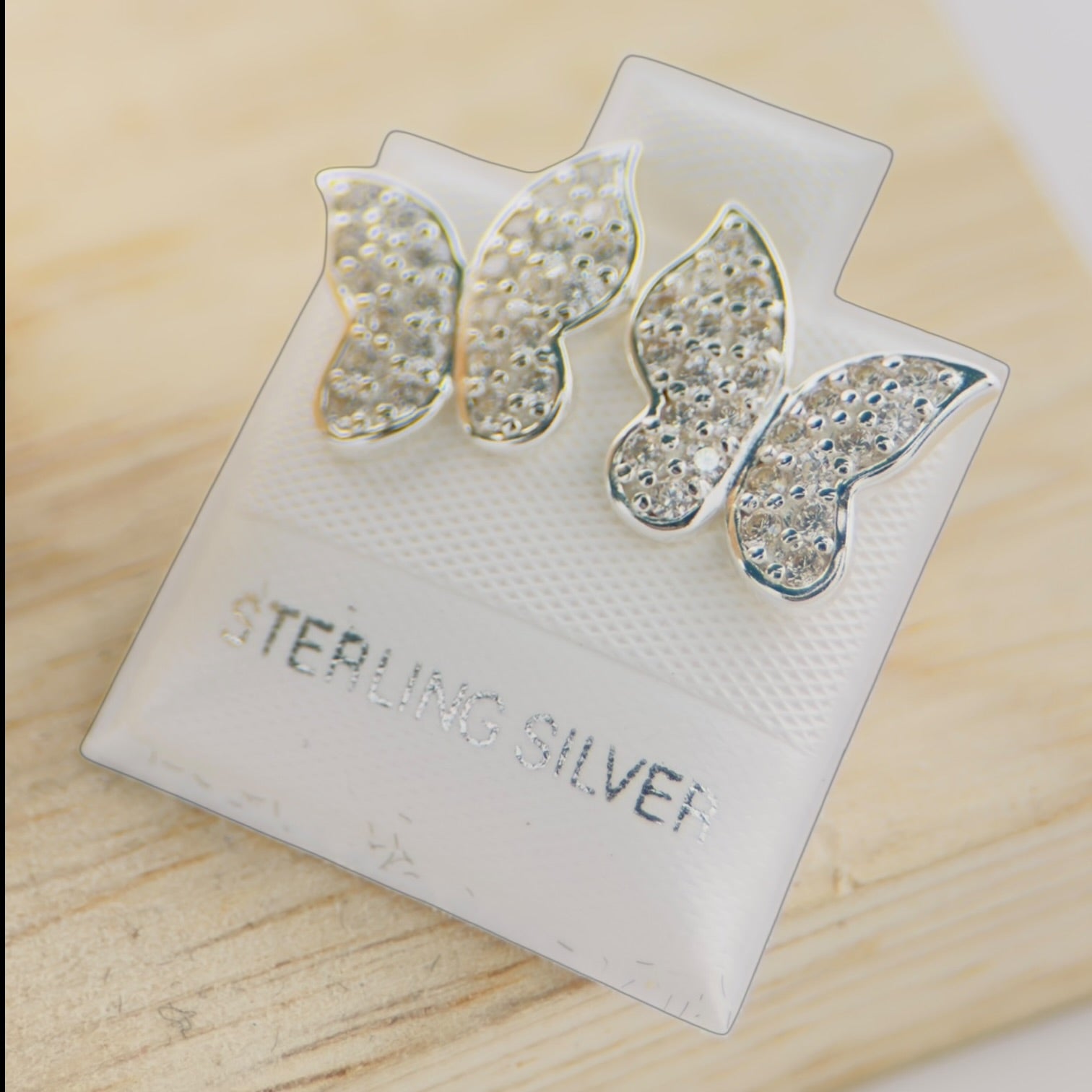 Estos aretes en forma de mariposa están elaborados en plata 925 y cubiertos de piedras brillantes que capturan la luz desde cualquier ángulo.