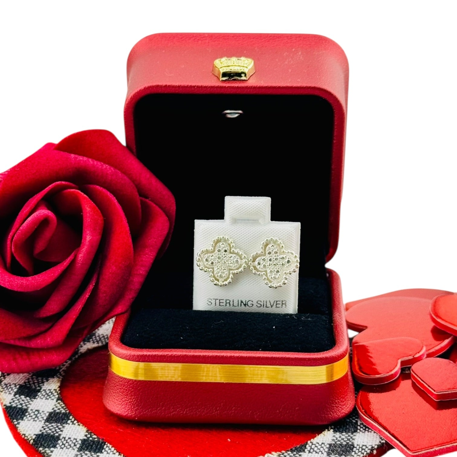 Un diseño elegante y atemporal en forma de trébol, completamente elaborado en Plata 925 con delicado acabado texturizado que aporta brillo sutil y sofisticación. Una pieza fina y versátil que combina con cualquier estilo.