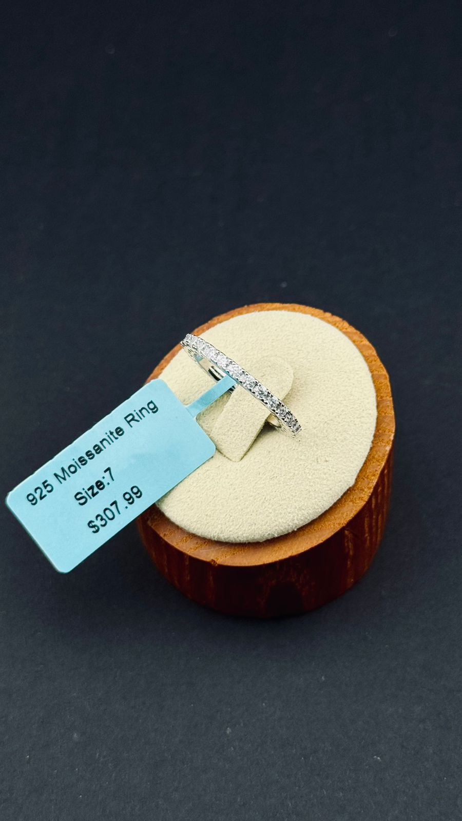 Celebra los momentos especiales con nuestra delicada churumbela "Eternidad de Moissanita". Este fino anillo presenta una hilera de pequeñas y brillantes moissanitas, engastadas individualmente en una sutil banda de plata 925 italiana. Su diseño elegante y el brillo inigualable de las moissanitas lo hacen perfecto para apilar o llevar solo, añadiendo un toque de sofisticación a tu mano.