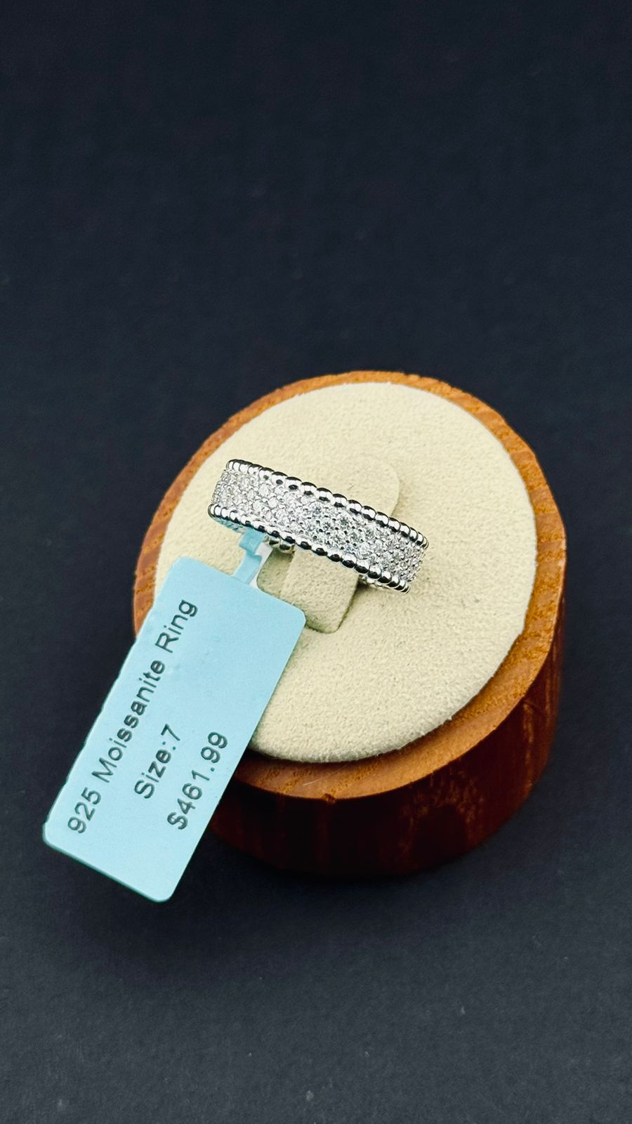 Deslumbra con un brillo excepcional con nuestra churumbela "Triple Destello de Moissanita". Este impresionante anillo presenta tres hileras de brillantes moissanitas, engastadas en una elegante banda de plata 925 italiana con bordes delicadamente labrados. Perfecto para celebrar ocasiones especiales o como una adición destacada a tu colección de joyas.